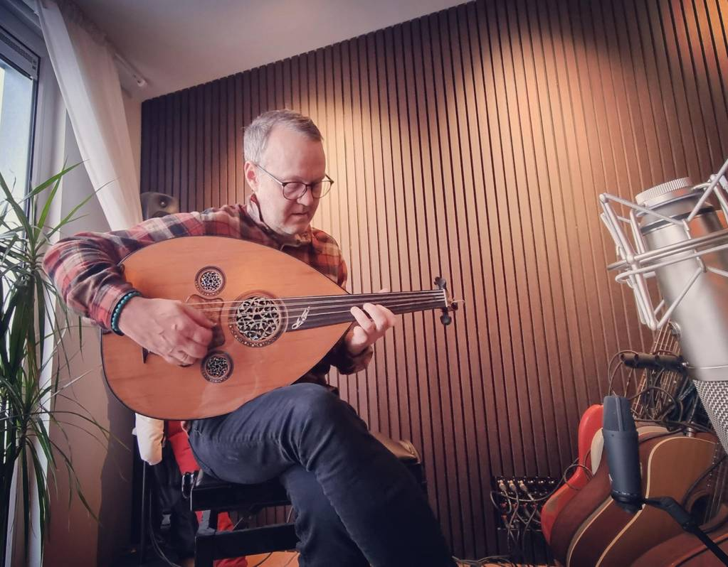 „Ég sem sagt lærði á indversk hljóðfæri í gegnum netnámskeið sem dr. Rajeeb Chakraborty Sarod stýrði í covid,“ rifjar hann upp. „Ég kynntist Rajeeb ágætlega, hann er að búa til tónlist fyrir Bollywood-myndir og svona og hann sló til þegar ég bauð honum í samstarf.“